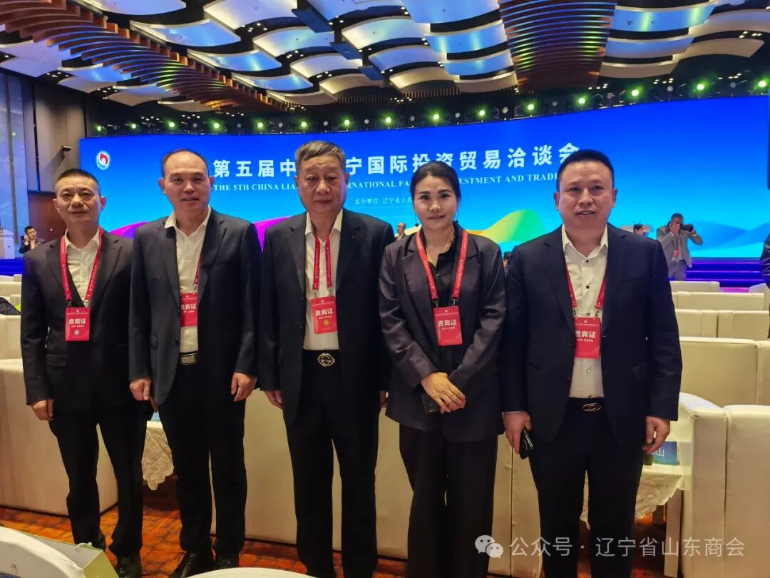 ▲辽宁省山东商会党支部书记李大利与部分异地商会会长合影留念